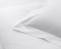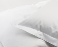 A classic pillow case with a decorative flag and envelope opening, manufactured in combed cotton, satin woven.