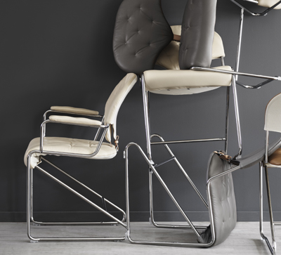 • Seat section in tubing chrome, black or green with support fabric and leather edging