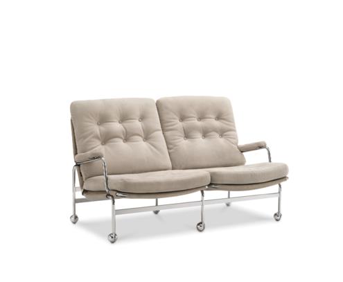 This elegant 2-seater sofa offers the perfect accompaniment to the original Karin armchair, designed by Bruno Mathsson in 1969. It builds on the classic collection, with comfortable stuffed cushions that rest on a chrome-plated frame with supporting web. In addition to sofas and the original chair, the Karin range also features a stool and tables available in multiple sizes.