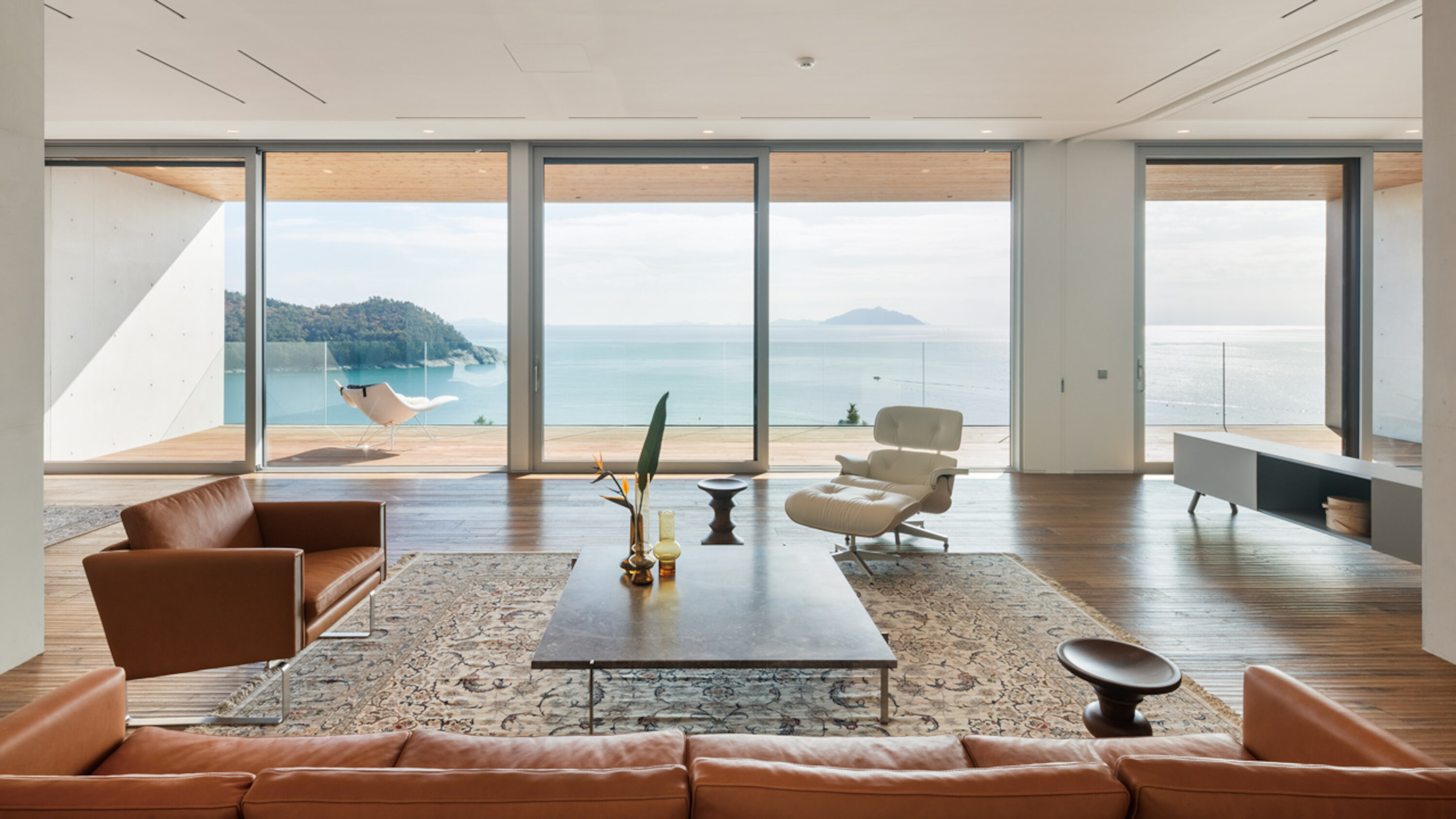 South Cape Spa and Suites is a resort complex facing the South Sea on the Korean Peninsula, where you can also enjoy playing golf. This luxury resort, which is open to the sea, offers guests the ultimate in relaxation. The concrete walls undulate like waves along the building, creating a dynamic appearance that makes it seem to float in the sky. Guest rooms are furnished with DUX beds and Ligne Roset furnishings, and you can enjoy a Geneva sound system. In addition, the rooms feature Aesop amenities. Don't miss the rare pianos and artwork scattered throughout the building.